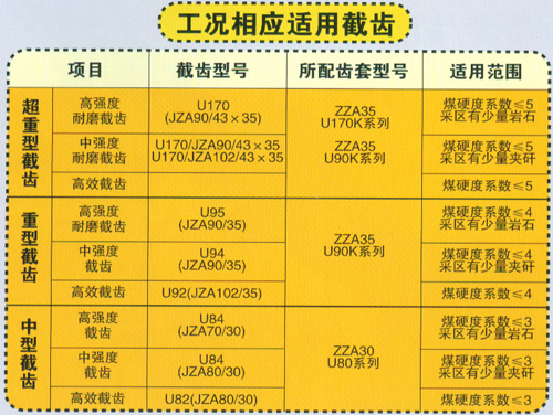 如何正確選用截齒 工況相應(yīng)適用截齒: